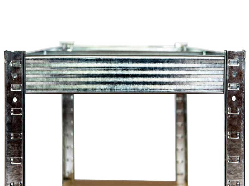 Stabile Konstruktion aus verstärkten Stahlprofilen gewährleistet hohe Standfestigkeit und Sicherheit für gelagerte Gegenstände.