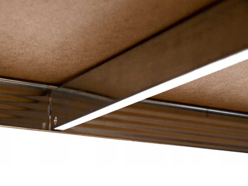Regalböden aus starkem MDF – das Regal ist mit 5 robusten Böden ausgestattet, die jeweils bis zu 200 kg tragen, bei einer Gesamtbelastbarkeit von bis zu 1000 kg.