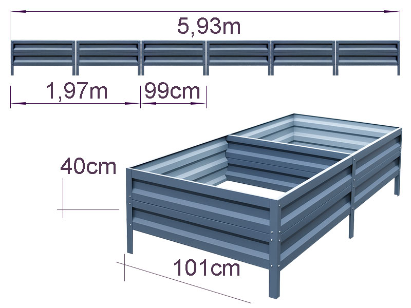 Cinkota dobju apmale dārzam vai siltumnīcai 20 x 101 x 197 cm / Cinkota dobju apmale dārzam vai siltumnīcai 40 x 101 x 593 cm