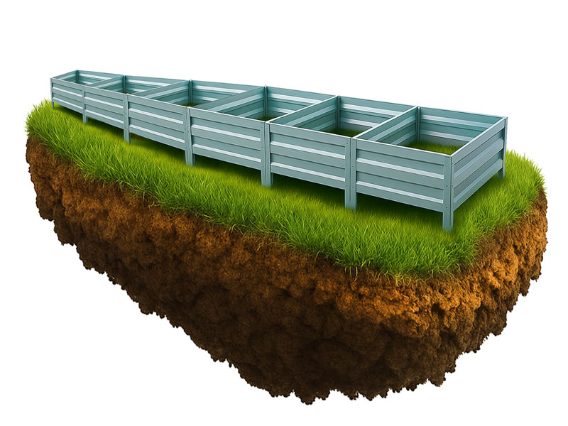 • Mitruma saglabāšana — cinkotās dobju apmales notur mitrumu, samazinot laistīšanas biežumu.