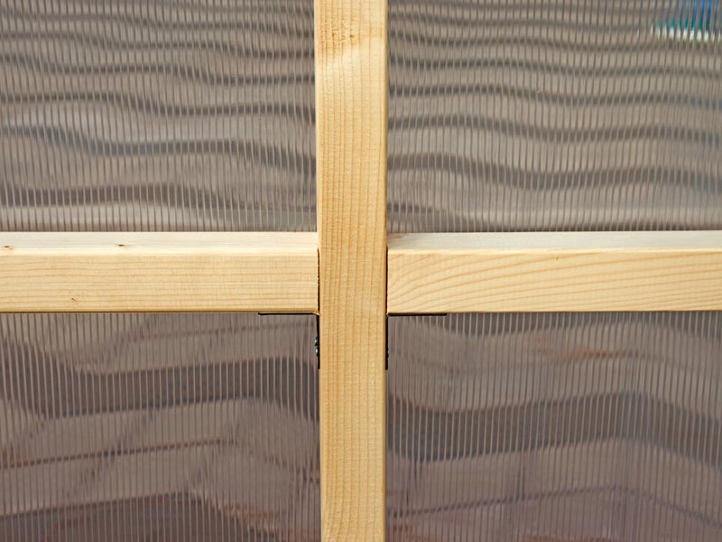 Impregnēta koka siltumnīca CASA ir veidota no augstas kvalitātes 45×45 mm Zviedrijas priedes, apstrādātas ar caurspīdīgu koksnes impregnēšanas līdzekli. Šī apstrāde aizsargā konstrukciju pret mitrumu un bioloģisko bojājumu, nodrošinot ilgstošu izturību un saglabājot dabīgo koksnes izskatu.